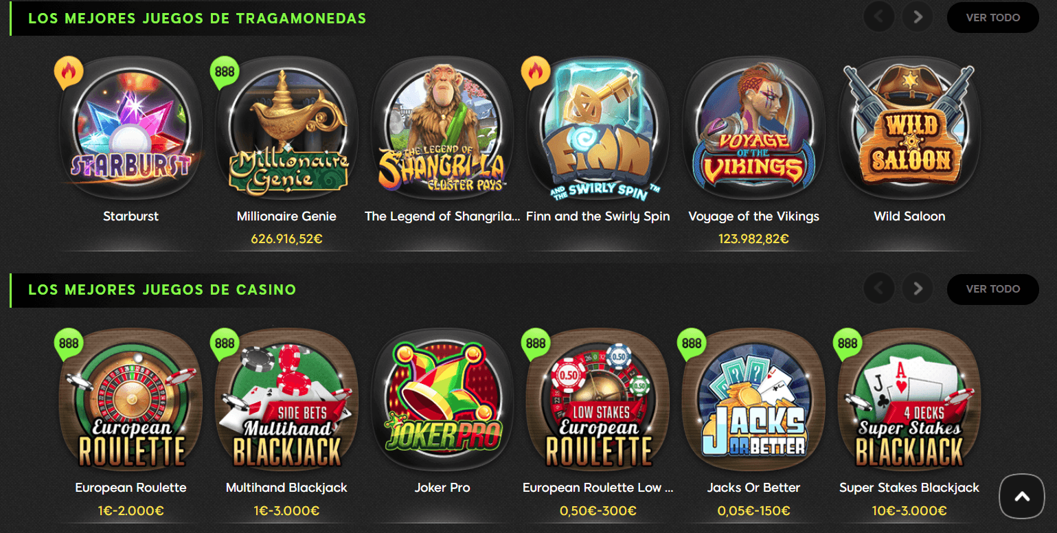 Gracias a su plataforma especial, conocida como Orbit, jugar en 888 ofrece una experiencia aún más íntima y personalizada que la de un casino en línea más. Hay más de 1000 juegos, y el software adapta las opciones de juego y los bonos a tus preferencias mientras juegas.Siga este enlace probar suerte En nuestra página web Nuestra reseña del casino en línea 888 abarca los juegos, los bonos, el juego móvil, las finanzas y mucho más: estás visitando un casino que funciona en todos los aspectos.